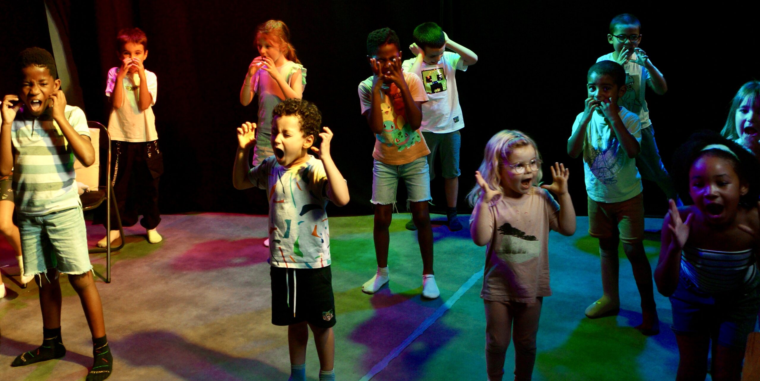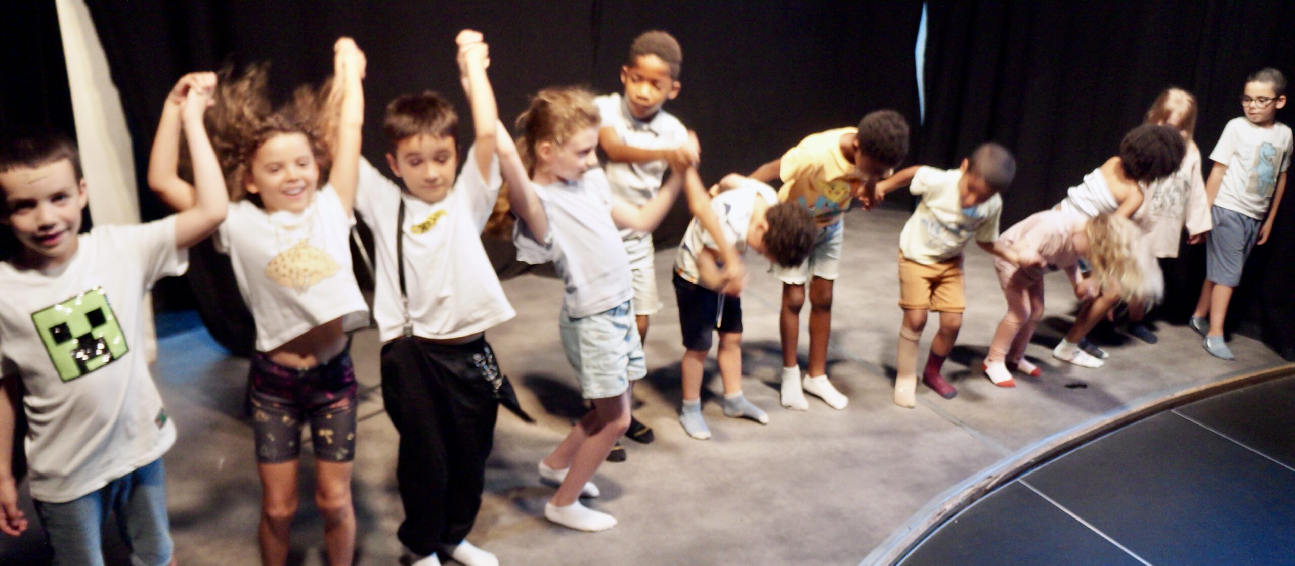 Entre jeux d’expression, mouvements rythmés et improvisations, ils ont exploré la scène avec énergie et imagination. Le stage s’est achevé par une présentation devant les familles.