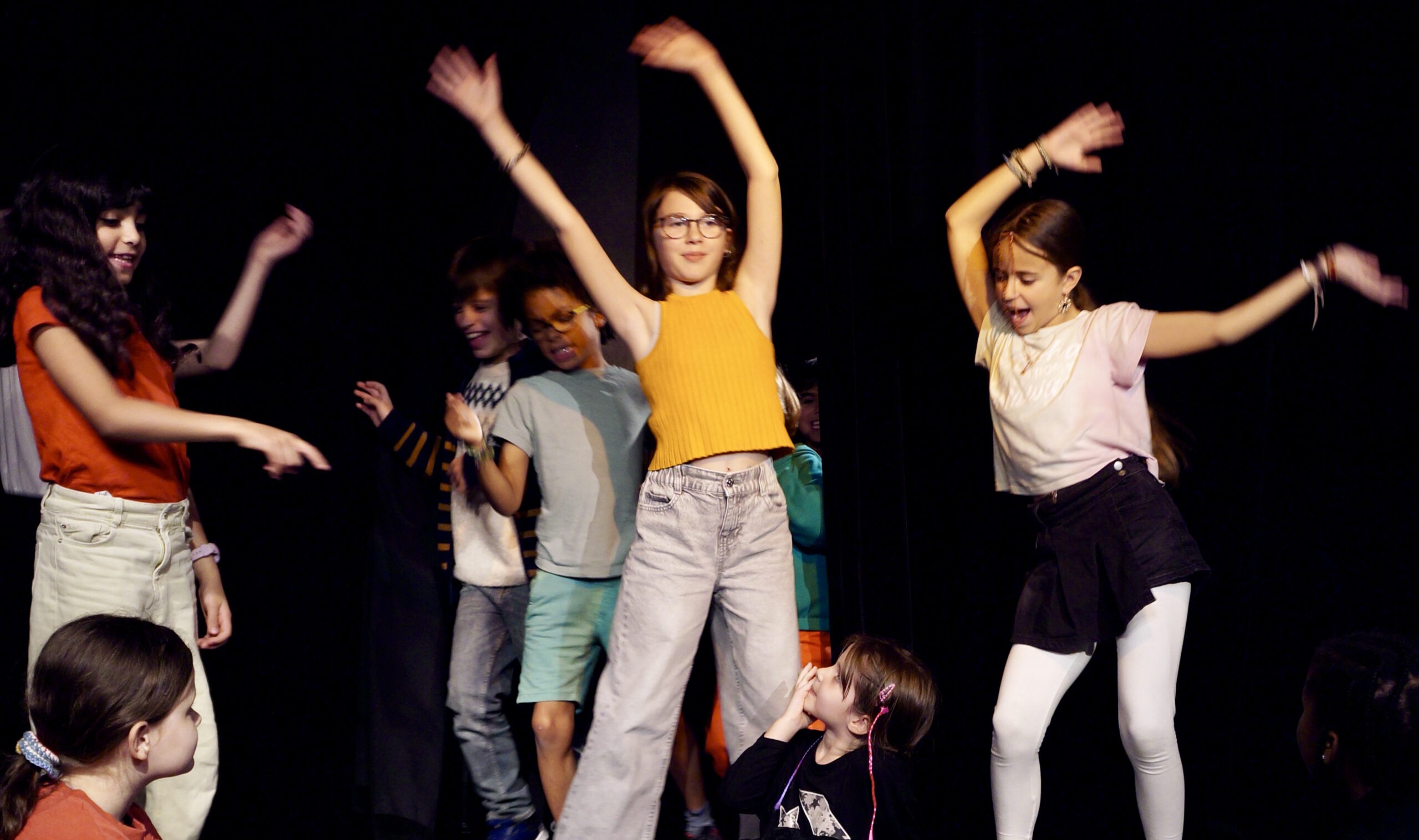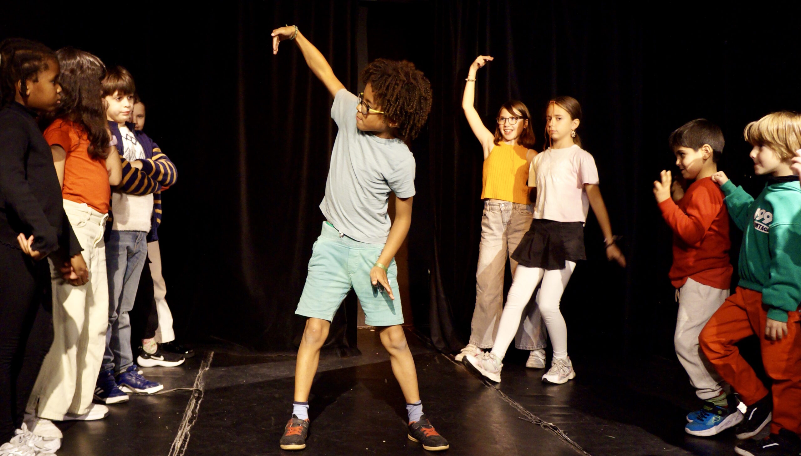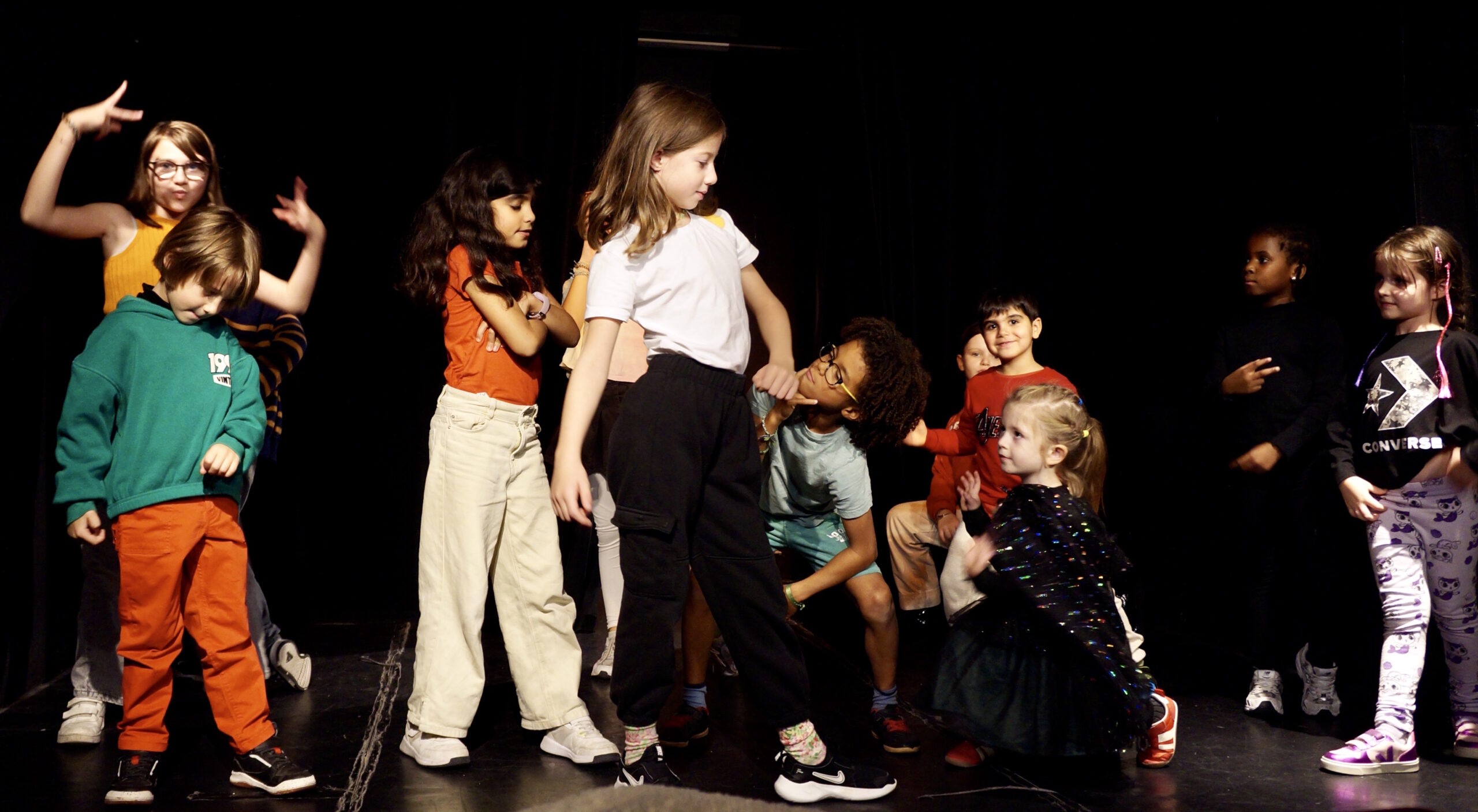 Sous la direction de Marie Jarnoux (comédiennne) et Sarahël Vetral (danseuse), les enfants ont exploré la rencontre entre parole et mouvement, rythme et improvisation.